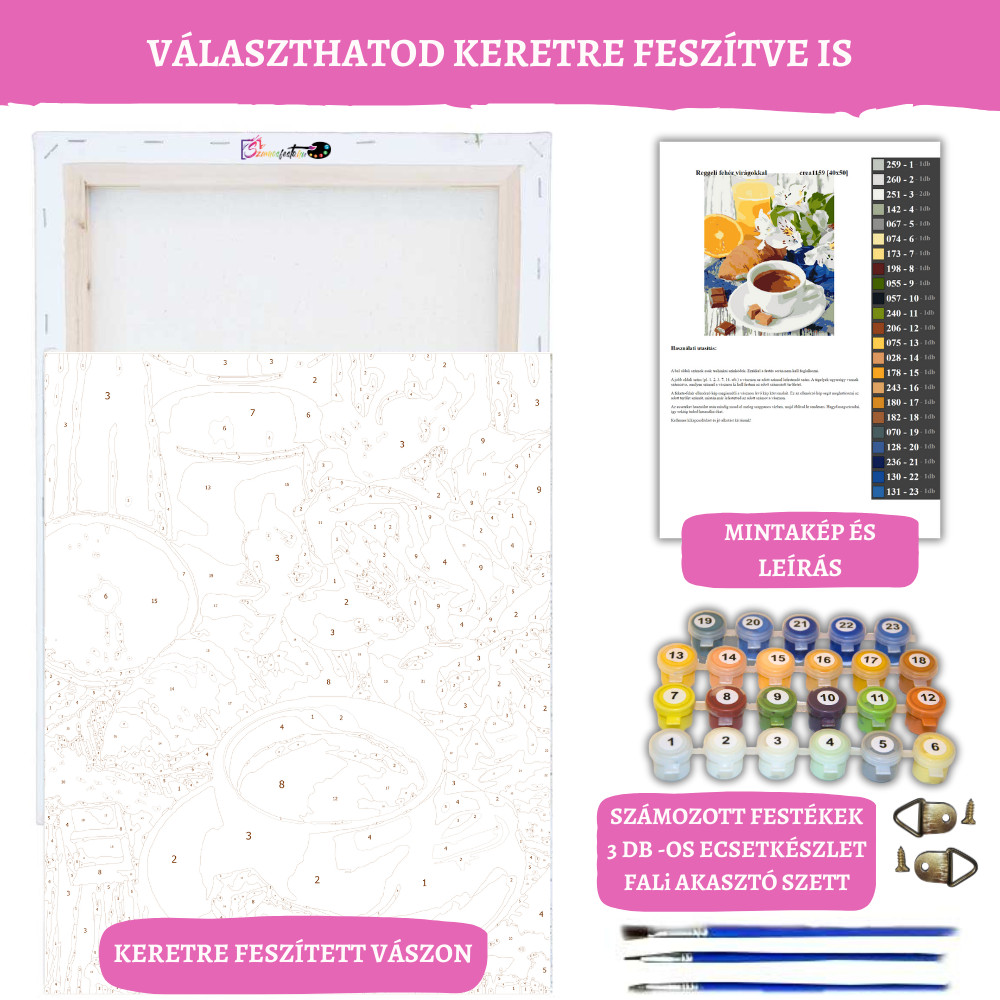 Szeretnél festeni, de úgy érzed, nincs művészi érzéked? A számozott kifestőkkel semmi sem állhat az utadba! Ezzel a technikával könnyedén festővé válhatsz. A készletben található vásznon számozott kontúrvonalak jelzik, hogy melyik területet melyik színnel kell kifestened. Ahogy haladsz előre, látványosan rajzolódik ki előtted a festmény. A számozott kifestő megfestése nem csak egyszerű, de szórakoztató is - előzetes tapasztalat nem szükséges hozzá. Vágj bele és merülj el a színek és az alkotás varázslatos világába!